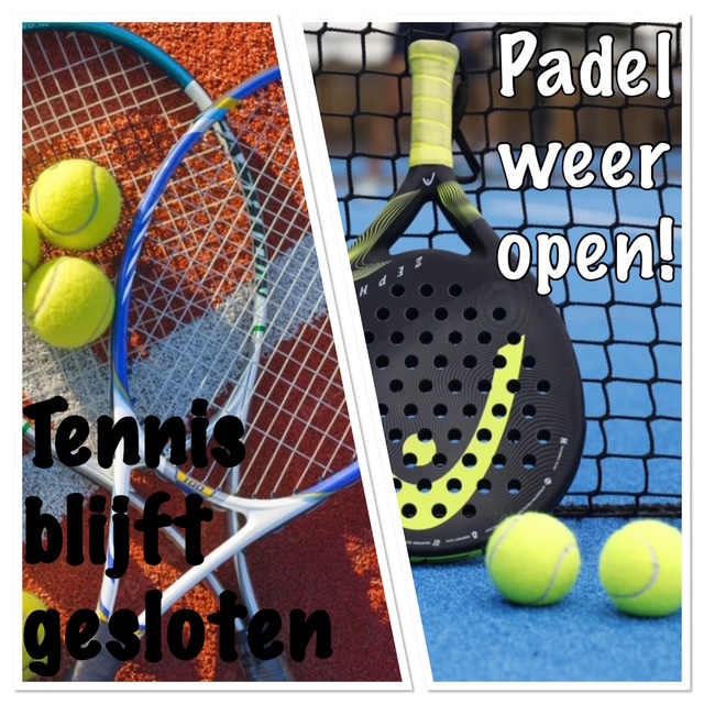 De padelbanen zijn per heden, dinsdag 13 januari, weer bespeelbaar. De tennisbanen buiten blijven gesloten.