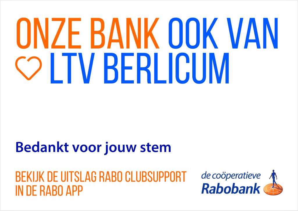 De stemperiode van de Rabo ClubSupport heeft LTV Berlicum een financiële bijdrage van € 900,37 opgeleverd. Dit mooie bedrag is tot stand gekomen dankzij jullie stemmen, waarvoor dank!