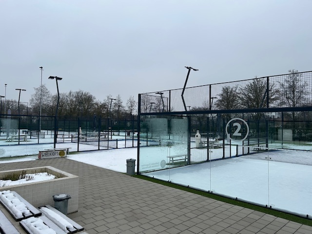 Zowel de tennis- als padelbanen zijn nog volledig wit. We houden het goed in de gaten en sturen een update als er weer gespeeld kan worden. Vooralsnog is dit zowel voor padel als tennis buiten nĂet mogelijk.